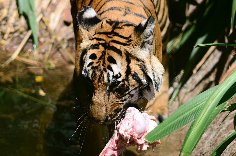 A little after 11:30 a keeper showed up to toss them some chunks of fresh beef heart. Mek and one of the boys knew exactly where to wait.